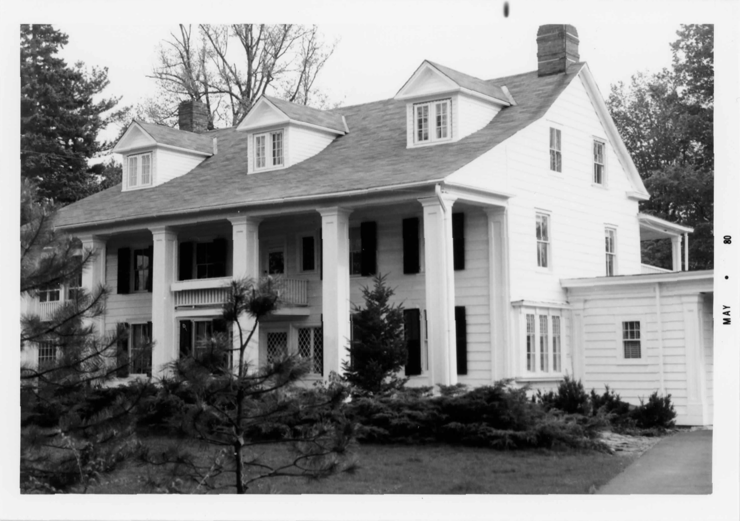 columned portico across the front (north side); two-tiered screened