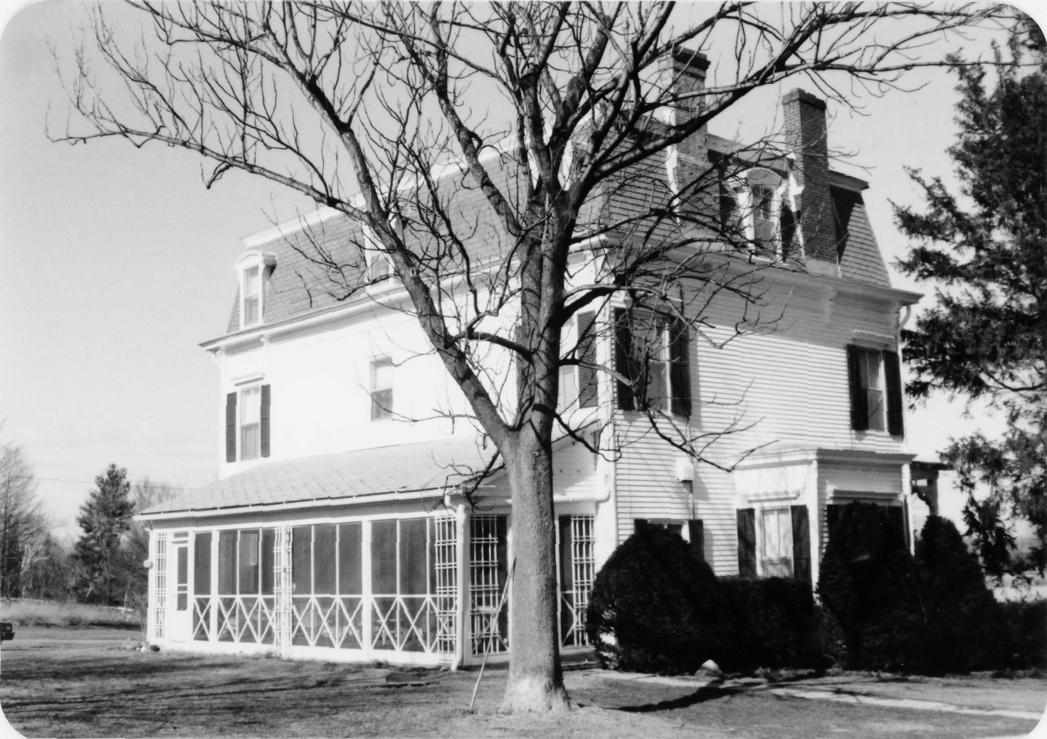 Features: Second Empire style farmhouse; mansard roof with