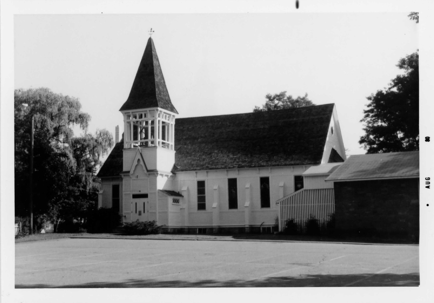 Features: The Stick style church has a large open bell tower