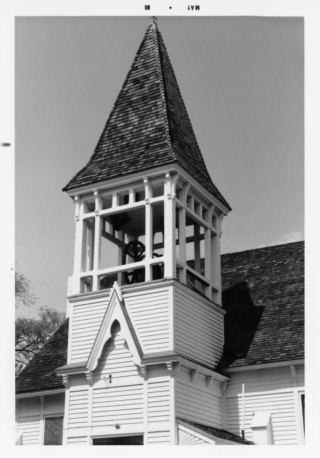 Features: The Stick style church has a large open bell tower