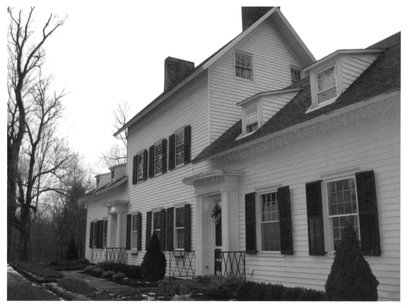 two-and-one-half-story center section flanked by one-and-one-half