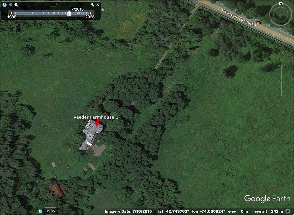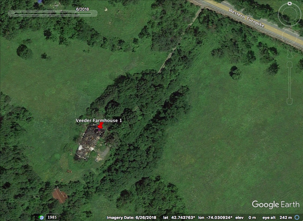 The Veeder Farmhouse #1 site viewed extant on Google Earth (July