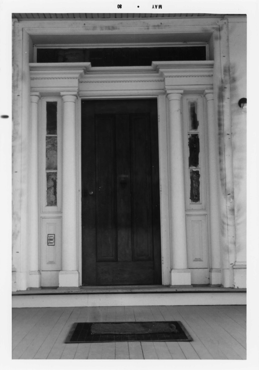 house; classical recessed entrance with paneled door, transom, side